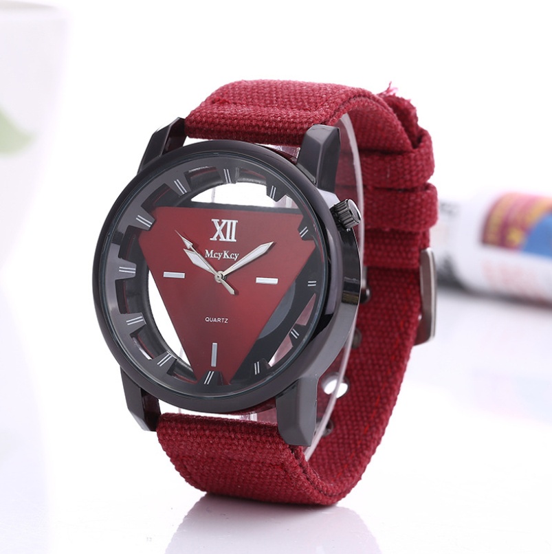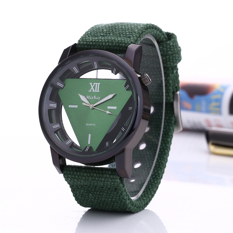 Factory direct fashion quartz watch men’s canvas belt hollow inverted triangle men’s and women’s watches